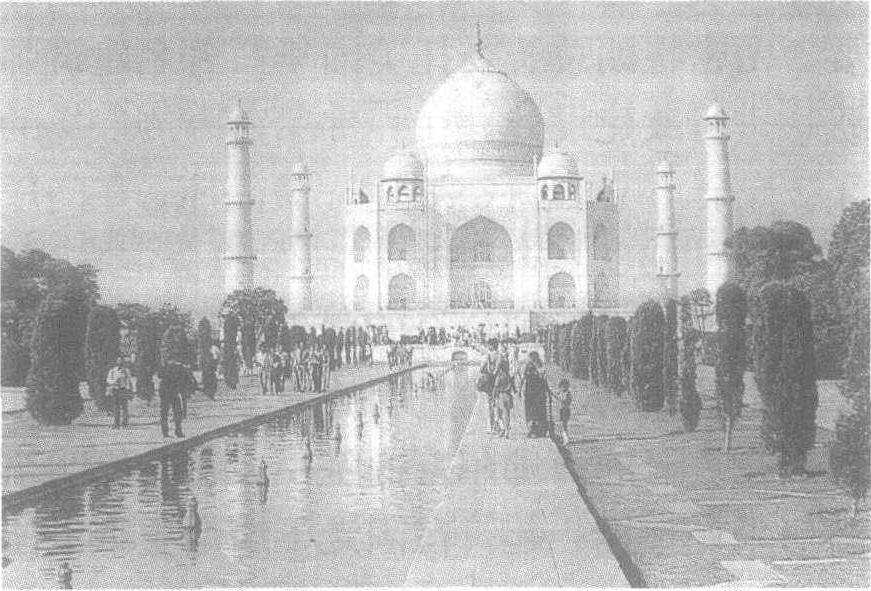 泰吉·玛哈尔陵 泰吉·玛哈尔陵Taj Mahal又译“泰姬陵”。印度著名的古迹之一。1630—1653年莫卧儿帝国皇帝沙杰汗为真妃建造的墓。雄传壮观,典雅圣洁,殿堂、钟楼、尖塔、庭园、水池等配合和谐,错落有致。全部建筑都用白色大理石砌成,内外部均施雕镂,用色彩缤纷的珍贵宝石镶嵌成花纹,图案精巧华丽,与澄碧的水澉上下生辉、格外壮观。是印度伊斯兰建筑的主要代表。 |