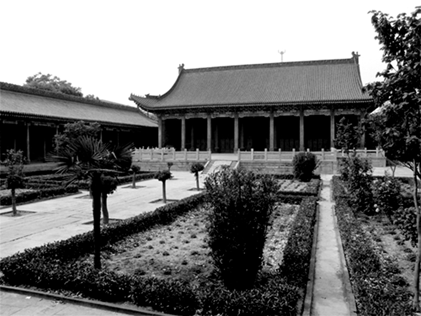| 释义 | 泾阳县文庙jingyangxian wenmiao位于泾阳县泾干镇南街。始建年代不详,明代至清同治元年(1862)两次毁于兵燹,一次毁于地震。清同治四年(1865)、光绪十一年(1885)两次重修。光绪十一年重修时本县安吴寡妇周氏捐银4万两,建筑规模宏大。现仅存大成殿、戟门、乐房、东西庑殿等。文庙坐北朝南,平面呈长方形,南北长55米,东西宽44米。主体建筑居中轴线上,两侧为东、西两庑及耳房。大成殿面阔七间,进深四间,带前廊,歇山灰瓦顶,琉璃剪边;七架梁,彻上明造,仍用驼峰、叉手,但多雕饰;歇山转角做法用顺梁和扒梁;外檐斗拱出45°斜拱,其中平身科为如意斗拱,角科、柱头科为五踩重昂,昂嘴也做雕饰。斗拱及枋上绘山水花草画。檐柱为方形石柱。戟门面阔三间,进深二间,单檐歇山顶,细部做法同大成殿;明、次间均辟门,设三级踏跺。庙内现存历代碑刻、石人、石匾、碑首、碑趺等多件。1990年维修。1992年公布为陕西省重点文物保护单位。