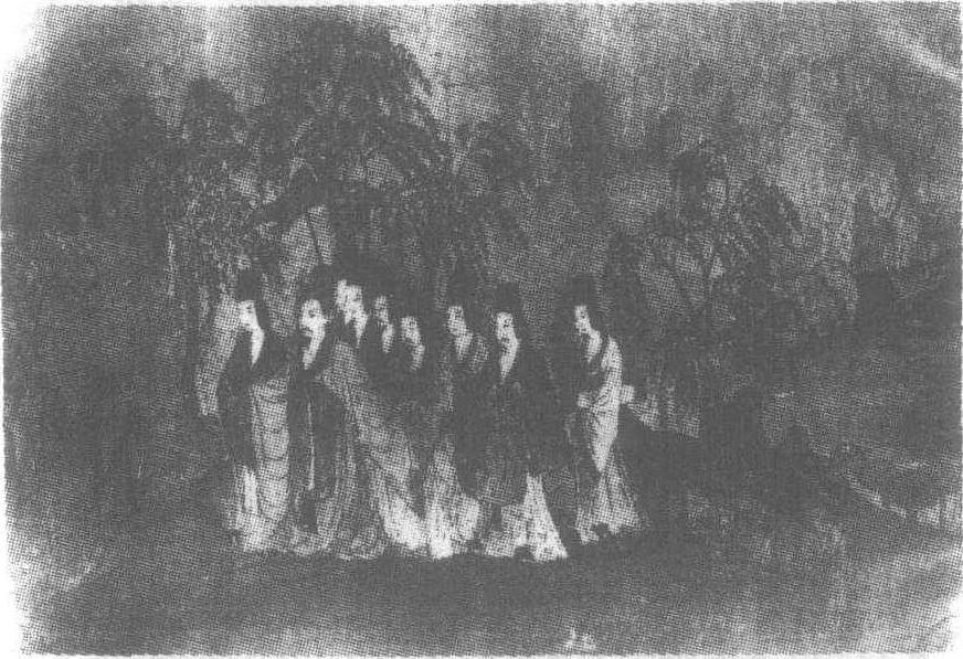 洛神赋图 《洛神赋图》《洛神赋图》 是东晋顾恺之原作,宋摹本,绢本,设色,长570厘米,高27厘米。取材于汉魏文学家曹植的 《洛神赋》。《洛神赋》 以第一人称手法,描述了曹植在由京师返回封地途中渡洛水时与洛水女神相遇而生爱恋之情,但因人神路隔而无奈分离的故事。千百年来,它以扑朔迷离的情节、婉转幽怨的情调、绮丽华美的文辞、美丽典雅的形象而感动许多后人,历来被作为音乐、诗歌、戏曲、绘画等文艺作品的母题而被阐发或再创作。这里选择的是曹植与洛神相逢并与洛神无奈离去的两段描绘,以及曹植拨开侍从见到洛神一刹那间的局部描绘。在这个画面中,主要人物曹植较其他人物突出,描绘也较细腻。我国古代绘画与西洋画的不同之处在于,它并不过分依赖人们对平面视觉规律来处理对象。例如在平面中,主要的人物形象更易引人注目、运动方向上的形象更易引人注目。根据这一视觉习惯,我国古典绘画常常将主要的对象的形象、动态作更为细致的处理。这幅画中充分体现了这个特点,曹植双手似在分开众人,步履趋前,眸子的八仰一俯,手足之一举一投,将那欲语无言、眉目顾盼之情全都表现出来。众侍从则目光呆滞,似乎视而不见,正是曹植一人 “睹一丽人于岩之畔” 的最好陪衬。在洛神驾六龙云车离去一段中,文鱼、玉鸾、鲸鲵等神物环绕云车,动态不一,而神女则凝神幽思,万般无奈。使人们在光怪陆离的色彩与造型中似乎听到了水族天禽的喧啸、笙歌嘹亮的行乐及神女哀婉的叹息。在动与静、闹与宁的对比中,衬托出主人翁分外寂寞的心情,与原作中以华韵辞句写无奈离愁有异曲同工之妙。 《洛神赋图》《洛神赋图》是东晋顾恺之原作,宋摹本,绢本,设色,长570厘米,高27厘米。取材于汉魏文学家曹植的《洛神赋》。《洛神赋》以第一人称手法,描述了曹植在由京师返回封地途中渡洛水时与洛水女神相遇而生爱恋之情,但因人神路隔而无奈分离的故事。千百年来,它以扑朔迷离的情节、婉转幽怨的情调、绮丽华美的文辞、美丽典雅的形象而感动许多后人,历来被作为音乐、诗歌、戏曲、绘画等文艺作品的母题而被阐发或再创作。这里选择的是曹植与洛神相逢并与洛神无奈离去的两段描绘,以及曹植拨开侍从见到洛神一刹那间的局部描绘。在这个画面中,主要人物曹植较其他人物突出,描绘也较细腻。我国古代绘画与西洋画的不同之处在于,它并不过分依赖人们对平面视觉规律来处理对象。例如在平面中,主要的人物形象更易引人注目、运动方向上的形象更易引人注目。根据这一视觉习惯,我国古典绘画常常将主要的对象的形象、动态作更为细致的处理。这幅画中充分体现了这个特点,曹植双手似在分开众人,步履趋前,眸子的八仰一俯,手足之一举一投,将那欲语无言、眉目顾盼之情全都表现出来。众侍从则目光呆滞,似乎视而不见,正是曹植一人“睹一丽人于岩之畔”的最好陪衬。在洛神驾六龙云车离去一段中,文鱼、玉鸾、鲸鲵等神物环绕云车,动态不一,而神女则凝神幽思,万般无奈。使人们在光怪陆离的色彩与造型中似乎听到了水族天禽的喧啸、笙歌嘹亮的行乐及神女哀婉的叹息。在动与静、闹与宁的对比中,衬托出主人翁分外寂寞的心情,与原作中以华韵辞句写无奈离愁有异曲同工之妙。 《洛神赋图》东晋绘画。顾恺之(约345~406,字长康,今江苏无锡人)创作。绢本着色画卷,它取材于三国魏诗人曹植的 《洛神赋》 ,运用横卷构图形式,卷首画诗人和随从在洛川遥望美人,描绘出美人含情脉脉、飘然若仙,可望而不可及; 继而画出诗人扶着随从,追求顾盼之神态; 接着画洛神驾六龙乘云车之风姿; 卷末画诗人回归时眷恋不舍之神情。整个画卷从诗人初见洛神到洛神离去,组成了一幅幅形象鲜明的抒情画图,突出了洛神之美和诗人对洛神之爱慕,表现了诗赋中所描写的对美好爱情的热烈追求和失去爱情的痛苦。画卷充满欢欣与惆怅交织的气氛,以形写神,具有较强的艺术感染力。对后世人物画以很大影响。这一画卷有宋摹本,长572厘米,高27厘米。现藏北京故宫博物院。 |