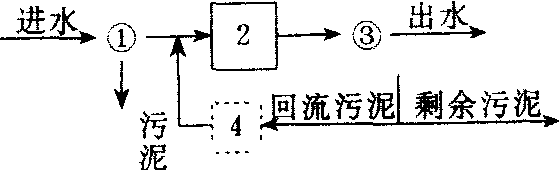 活性污泥法流程 1. 初次沉淀池; 2. 曝气池;3. 二次沉淀池; 4. 再生池 活性污泥法按其曝气方式划分为:❶空气曝气; ❷纯氧曝气; ❸过氧化氢曝气。由❶~ ❸,净化效率及成本都将大大增加。 |