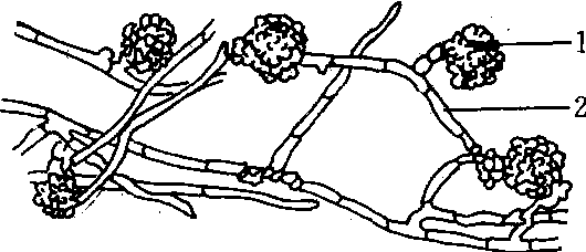 半知菌亚门,无孢目。菌丝无色至淡色,单个分枝产生的小形或球形细胞纠积形成桑椹状、近球形、淡褐色、枯黄色至黑色菌核,不产生无性孢子。常见的有丝椹霉(Papulospora sp.),引致黄麻根腐病。