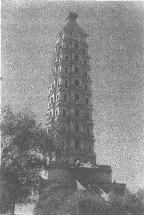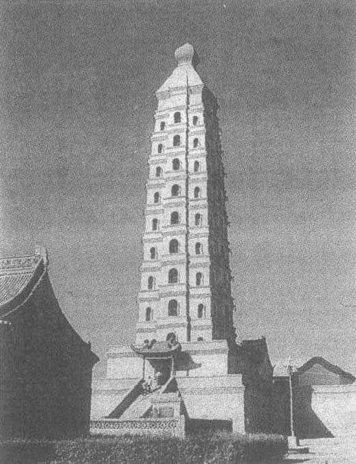 海宝塔 海宝塔又称赫宝塔。位于银川市北郊。相传公元5世纪初夏国王赫连勃勃重修。清乾隆三年(1738)因地震毁坏。今塔为乾隆四十三年(1778)重建。塔身9层11级,高53.9m。有木梯可盘旋登上第9层。全国文物重点保护单位。1963年董必武曾登此塔。 海宝塔宁夏佛塔。位于宁夏回族自治区银川市北郊。据记载此塔为夏国王赫连勃勃(407年~427年)重修,故又称“赫宝塔”,俗称 “北塔”。寺院中轴线上自东向西建有山门、天王殿、钟楼、鼓楼、大雄宝殿、韦陀殿、卧佛殿等。整个寺院分3部分,即塔院、北院和后院,占地约2万平方米。卧佛殿内有释迦牟尼涅槃像,全身长达7.6米,后立迦叶、阿难等10大弟子,神态不一,为释迦牟尼临终前向弟子们嘱托后事的情景。大雄宝殿与韦陀殿之间耸立海宝塔,系9层11级楼阁式砖砌方塔,坐落在方形高台式塔基上,由塔座、塔身、塔刹3部分组成,通高53.9米,塔身44米。每层四面各置券门,门两侧设凹龛。塔刹四角攒尖呈桃形。步上30级台基,塔座东西辟券门,前有歇山小抱厦,从此处入口经左右暗道20级进入塔内。塔室方形,登木梯154级可达顶层。海宝塔1961年被国务院确定为全国重点文物保护单位。