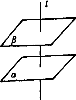 图2 由上述定理可推得:若一个平面内的两条相交直线分别平行于另一个平面内的两条直线,则这两个平面平行. 如图2,若a,b为平面β内的两条相交直线,a′,b′为平面a内的两条直线,且a∥a′,b∥b′,则α∥β. 另外,还有一个常用的判定定理:垂直于同一条直线的两个平面平行. 如图3,若l⊥α,l⊥β,则α∥β.