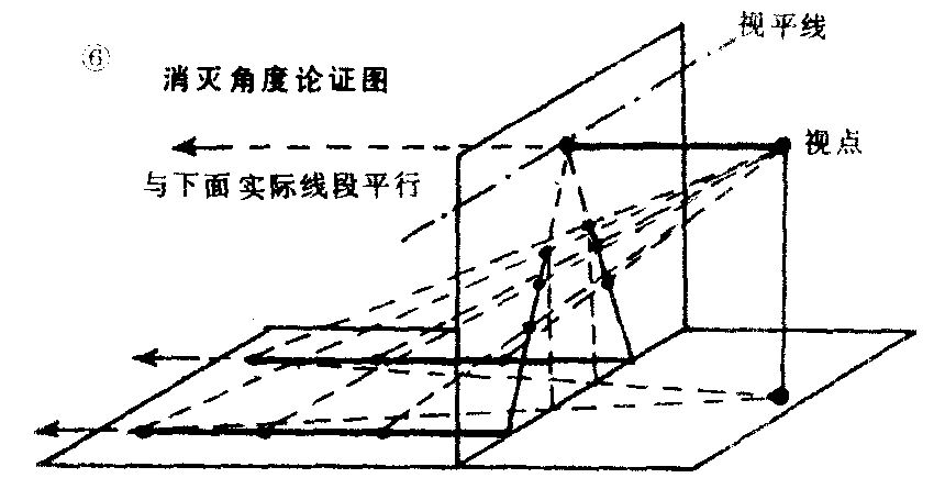 | 释义 | 消灭点互相平行的水平线段与画面成角时,愈远愈见靠拢集中的点。又称消失点、消视点。可分为心点、距点、余点、测点、天点、地点。求消灭点的总法,都是由视点作一条视线平行于实际线段与视平线(灭线)相交一点,此点即某角度线段的消灭点(见图2