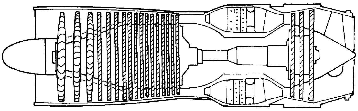 | 释义 | 涡轮喷气发动机turbojet engine又称“涡喷发动机”。由喷管高速喷射出的燃气产生反作用推力的燃气涡轮发动机。由压气机、燃烧室、燃气涡轮组成的核心机和喷管等部件组成。在不增加核心机的条件下,为了在短时间内增加发动机推力可采用在涡轮后安装加力燃烧室的方法,成为加力涡轮喷气发动机。涡轮喷气发动机喷射气流速度高,适用于超音速飞机。如飞行速度在亚音速和低超音速范围内,则发动机的推进效率比较低,经济性差。20世纪50年代出现的喷气式客机曾使用过,到20世纪60年代初逐渐被耗油率低、噪声小的涡轮风扇发动机替代。