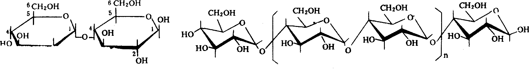 支链淀粉分子中,葡萄糖单元间除了α-1,4-糖苷键,还有α-1,6-糖苷键。有一部分葡萄糖单元与3个葡萄糖单元相连接,形成许多分支,两个分支点之间大约有20~25个葡萄糖单元。支链淀粉与碘作用呈紫色。 在人体中,淀粉首先被淀粉酶水解为麦芽糖,麦芽糖进一步水解得到D-葡萄糖。在稀酸中,淀粉水解最终得到D-葡萄糖 (参见“淀粉的水解)。 糖原是存在于动物肝脏和肌肉中的多糖,亦称肝糖、动物淀粉。其结构与支链淀粉类似,分支程度高于淀粉,两个分支点之间大约相隔3~4个葡萄糖单元。 淀粉Dianfen绿色植物通过光合作用产生的天然高分子碳水化合物,麦芽糖的聚合物,存在于植物种子、果实、块茎等部位,是植物贮存营养物质的主要形式,白色固体,可溶于水或在水中溶胀,淀粉溶液遇碘显蓝色。淀粉可在酸催化或酶催化下发生水解,最终的水解产物为D-葡萄糖。淀粉为人类主要营养要素之一。酿造工业用淀粉水解制糖、制酒和制醋。淀粉还用作胶粘剂等。 淀粉见“生物”中的“淀粉”。 淀粉starch由D-吡喃葡萄糖基通过α1→4或α1→4、α1→6连接而成的多糖。无分支的称为直链淀粉(Amylose),由几百个D-吡喃葡萄糖基以α1→4糖苷键连接而成长链螺旋状结构,溶于热水,遇碘显蓝色,无还原性。有分支的称为支链淀粉(Amylopectin),由数千个D-吡喃葡萄糖基以α1→4糖苷键,分支处以α1→6糖苷键连接而成多分支树枝状结构,不溶于热水,遇碘显紫红色,无还原性。是植物中最重要的贮存多糖。在种子、块茎和块根中作长期贮存,萌发和抽条时才动用;在光合组织叶绿体内作短期贮存,暗时便转变成蔗糖输出。淀粉粒中两种淀粉的比例随植物种类而异,一般含15%~25%的直链淀粉,75%~85%的支链淀粉,但糯稻淀粉粒几乎全是支链淀粉,豆类淀粉粒则几乎全是直链淀粉。是人类的粮食和动物饲料的主要成分,也是酿造、食品和医药工业的重要原料。 |