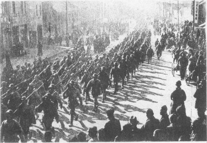 1948年12月 1 日中国人民解放军进入徐州 淮海战役Huaihai zhanyi解放战争时期,中国人民解放军华东、中原野战军在以徐州为中心,东起海州、西迄商丘、北自临城(今薛城),南达淮河的广大地区内对国民党军进行的一次重大战役。当时,国民党徐州“剿总”总司令刘峙所部7个兵团34个军分布在津浦、陇海铁路沿线,兵力共约80万人。华东、中原野战军约60万人,在广大人民的支援下,在淮海战役总前委邓小平、刘伯承、陈毅、粟裕、谭震林指挥下发起了淮海战役。整个战役分为三个阶段:第一阶段从11月6日至22日,我军在新安镇、碾庄地区歼灭敌第七兵团,击毙兵团司令黄伯韬。第二阶段从11月23日至12月15日,我军在宿县双堆集地区,围歼了敌第十二兵团,生俘兵团司令黄维、副司令吴绍周。12月4日国民党徐州“剿总”副司令杜聿明率领三个兵团放弃徐州南逃,被我军包围在永城东北的陈官庄地区,当即歼灭了突围的敌第十六兵团,兵团司令孙元良只身潜逃。为了配合平津战役,稳住平津之敌,淮海战场对所包围的敌第二、第十三两个兵团围困两周,不作最后消灭。第三阶段从1949年1月6日至10日,我军发起总攻,全部歼灭杜聿明兵团,生俘杜聿明,击毙第二兵团司令邱清泉,第十三兵团司令李弥只身逃走。淮海战役历时66天,我军以13万人的伤亡,歼敌一个总部的前进指挥部、5个兵团部、22个军部、56个师(内四个半师起义),共55.5人,解放了长江中下游以北的广大地区。 《淮海战役》辽沈战役结束后四天,解放军便对国民党黄伯韬兵团发起攻击,将其兵团合围在徐州之东的碾庄。与此同时,中原野战军攻占徐蚌线军事要地宿县,切断徐州刘峙集团的陆上退路。蒋介石急调杜聿明任前敌指挥,回徐蚌作战。淮海战场形势严峻。11月16日,中共中央军委决定由刘伯承、邓小平、陈毅、粟裕、谭震林组成总前委,指挥中原野战军和华东野战军作战。 淮海战役解放战争中的三大战役之一。1948年11月初至翌年1月10日,华东和中原野战军协同,在以徐州为中心,东起海州、西至商丘、北起临城(今薛城)、南达淮河的广大地区对国民党军进行的一次决定性战役。中共中央决定由刘伯承、邓小平、陈毅、粟裕、谭震林组成总前委,邓小平为书记,领导淮海前线解放军的一切行动。解放军首歼海州西撤敌军劲旅于碾庄圩;续歼豫南来援敌军重兵于双堆集;再歼徐州倾巢西逃敌军主力于水城地区。共歼敌55万人,使敌军精锐主力丧失殆尽,南京、上海、武汉处于解放军直接威胁之下。 淮海战役第三次国内革命战争时期有决定意义的三大战役之一。国民党在以徐州为中心的淮海地区集结了80万人的兵力。华东野战军、中原野战军及地方武装共约60万人,在人民群众支援下,于1948年11月6日发起了淮海战役。此役历时65天,共歼敌55万5千余人。基本上解放了长江中下游以北广大地区,使国民党统治中心南京处在人民解放军直接威胁之下。国民党统治集团从此陷入土崩瓦解的状态。 淮海战役第三次国内革命战争时期,中国人民解放军华东野战军、中原野战军及地方武装60余万人在以徐州为中心,东起海州 (今江苏连云港市),西至商丘,北起临城(今山东薛城),南达淮河的广大地区,对国民党军进行的一次大规模战役。1948年,中共中央军委决定由刘伯承、陈毅、邓小平、粟裕、谭震林组成总前委,邓小平为书记,统一指挥淮海前线军事。参战部队在总前委的领导下,依靠广大人民的支援,从1948年11月6日至1949年1月10日进行了淮海战役,首先在徐州以东新安镇碾庄地区歼灭了敌军黄伯韬兵团; 接着在宿县西南双堆集地区围歼了黄维兵团; 最后于永城东北的青龙集、陈官庄地区全歼杜聿明集团的邱清泉、孙元良、李弥3个兵团。此役,共歼敌55.5万人,基本上解放了长江以北的华东、中原地区。 淮海战役解放战争著名三大战役之一,自1948年11月6日晚发起进攻,至1949年1月10日胜利结束,历时66天。1948年11月辽沈战役结束后,国民党统率部以白崇禧任总司令的华中“剿匪”总司令部所辖3个兵团及4个绥靖区部队共约35万余人,主力防御平汉路南段及长江中游地区;以刘峙为总司令的徐州“剿匪”总司令部所辖4个兵团、6个绥靖区部队约60万人,配置于津浦路徐州至蚌埠段及其两侧地区。中共中央军委决定:华东、中原野战军共23个纵队及中原、华东军区、华北军区所属冀鲁豫军区的地方武装共60余万人,在淮海前线党的总前委统一指挥下,发起淮海战役。11月22日黄昏,华东野战军在碾庄地区全歼国民党第7兵团,其司令官黄伯韬自杀身亡。12月15日中原野战军在双堆集地区全歼国民党第12兵团,生俘司令官黄维。1949年1月10日华东野战军在陈官庄地区全歼杜聿明集团三个兵团,俘杜聿明,击毙兵团司令邱清泉。此役人民解放军以13万余人的伤亡代价,全歼国民党军5个兵团部、22个军部、56个师共55.5万余人,解放了长江中下游以北广大地区。战役期间,中共中央华东局、中原局和冀鲁豫分局组织支前民工共543万人,担架20.6万副,大小车辆88万辆,挑子35.5万副,船只8500艘,汽车257辆,运送弹药730万kg,粮食2.15亿kg,运送伤员11万余名,有力保证了大规模作战的需要。 淮海战役解放战争时期,中国人民解放军在以徐州为中心,东起海州,西至商丘,北起临城(今薛城),南迄淮河的广大地区,与国民党军进行的一次战略决战。集结在该地区的国民党军有4个兵团和3个