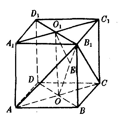 ![]() ❷解法1 如图2,连结AC,BD,B1D1,AB1.设AC∩BD=O,A1C1∩B1D1=O1.易证A1C1∥平面AB1C.因此A1C1上任何一点到平面AB1C的距离就是A1C1与B1C间的距离.因为∠O1B1C=∠O1B1A.容易证明点O1到平面AB1C所引垂线的垂足一定在∠AB1C的平分线B1O上.设O1E⊥平面AB1C,连结OO1.在Rt△OO1B1中,因为O1E·OB1=OO1·O1B1,所以