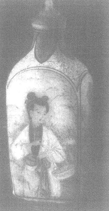 | 释义 | 清仕女玻璃鼻烟壶乾隆年间养心殿造办处玻璃厂制品,乾隆皇帝御用或赏赐用。清中叶,王公大臣和富商大贾喜好由意大利传入之鼻烟,因嫌西方金属烟盒使用不便,代之以玻璃制小口扁瓶,名“鼻烟壶”。并好以鼻烟壶的造型、色彩、做工自炫,以显身份。此件宫中制品造型优美,绘制精细,色彩艳丽,远胜民间所作。以白色玻璃做胎,扁肚小口,附铜镀金錾花盖,外口沿白地粉釉云霄纹一周,口下绘红白珐琅几何纹带、蓝白纹带、绿地黑绳纹。正反两面开光,正面勾环曲边开光内,绘一仕女持果实两只在逗弄婴孩; 另一面开光内绘一仕女向一婴孩指引一红色蝙蝠。烟壶两肩饰黄地浅红卷黄,腹下为仰云头带,足上部饰彩色如意云头,足底蓝釉楷书“乾隆年制”。