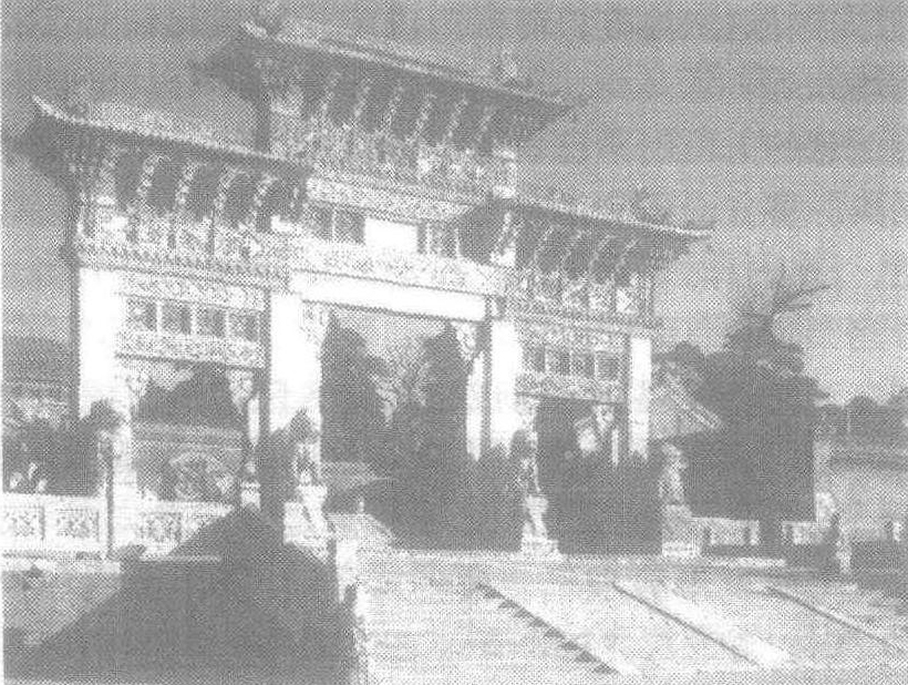 | 释义 | 清太宗昭陵清朝的第一个皇帝爱新觉罗·皇太极(1592—1643) 的陵墓。皇太极,努尔哈赤第八子,35岁即汗位,年号天聪、崇德。1636年改国号为清,称皇帝。在位18年,奠定了清朝入关统一中国的基础。入关前一年突然死于盛京 (今沈阳) 清宁宫,据说是因痛悼爱妃辰妃博尔济吉特氏 (庄妃之姐) 而亡。顺治元年葬入昭陵。昭陵是关外三陵中规模最大的一座,位于沈阳城北10里处,又称北陵。由于皇太极瘁死,仓促决定在其生前喜爱的狩猎之地修建陵园,顺治八年才基本竣工,后代诸帝对陵园不断扩建,修缮,使陵区臻于完备。昭陵为平地建造,为使其“依山傍水”,在昭陵后面以人工堆造起一座陵山,顺治八年封为 “隆业山”。山成九峰,高耸于地,气象万千。昭陵规制与福陵基本相同,陵区亦分为三部分: 大红门外; 大红门至碑楼; 方城和宝城。陵区最南面为下马碑,上面以满、汉、蒙、回、藏五种文字刻着 “亲王以下各等官员至此下马”。大红门外还有华表、石狮、石桥、更衣亭、宰牲亭等建筑,正中矗立着嘉庆年间完工的四柱三楼石牌坊,石牌坊正脊和横坊上都雕有花卉,奔龙等图案,上下横坊之间镜嵌透雕栏板,柱脚上有圆雕坐狮6对。大红门为三楹门楼,西侧袖壁上镶有五彩琉璃蟠龙。门内 “参道” (神路)两则整齐排列着石狮、麒麟、獬豸、骆驼、马、象6对石兽,被称为“十二御林”。其中两匹立马,英姿勃勃、昂首伫立,长嘶待征,据说是仿照皇太极生前爱骥“大白”、“小白”雕造的。向北便是大碑楼,内竖“昭陵神功圣德碑”一通,高15米,碑文是康熙皇帝御笔亲书。碑楼两侧建有茶膳房,涤器房等。再北是方城,四角有角楼,南面为三层隆恩门,北面正中是二层明楼,内立 “太宗文皇帝之陵”满汉两种文字石碑。方城正中为隆恩殿,面阔三楹,黄琉璃瓦覆顶,雕龙画栋,耀眼生辉。殿内有暖阁,阁内设宝床、帷幔、衾枕等物。小暖阁内是墓主神位。暖阁前有龙凤宝座、配椅、五供案、朝灯等。方城北是宝城、宝顶。袝葬昭陵的是孝端文皇后博尔济吉特氏 (庄妃姑母),皇太极的另一位皇后孝庄文皇后博尔济吉特氏 (即庄妃),葬在关内昭西陵 (见另条)。昭陵富丽堂皇,景色秀丽,清初道士苗君稷咏诗赞道: “龙蟠翠嶂郁岧峣,路夹苍松白玉桥,十二羽林严侍卫,风嘶铁马白云霄。”原有昭陵十景之胜,如隆山积雪、宝顶凝晖、龙头瀑布等。解放后又修湖建亭,辟为北陵公园。