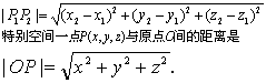 在给定的空间直角坐标系下,两点P1 (x1,y1 ,z1) 与P2 (x2,y2,z2 ) 间的距离是