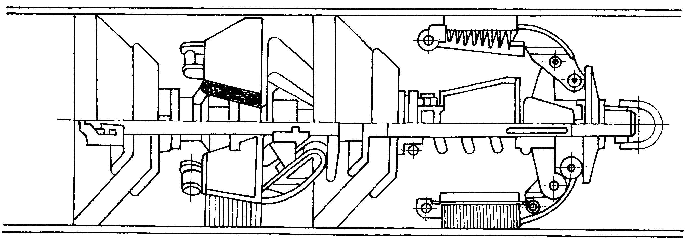 ❸检查并测量管道内壁上的凹陷、蚀坑、壁厚及扭曲等(所用仪器专称智能清管器或内检测器)。为了向(从)干管内放入(取出)清管器,需设置清管器收发装置,一般设在首、末站和中间泵站或压气站上,站间距较长时,也可在线路中途专设清管器收发站,其站间距一般为80~150km。清管器的构造与隔离塞类似,也有起导向和密封作用、中间有金属圆盘的皮碗,其特点是在密封件前后有清扫件或测量装置(用于智能清管器)。清扫件一般为数个沿圆周排列的钢丝刷,以及若干个带悬臂弹簧的塑料刀片,两者安装在同一轴上。其构造示意见下图。
