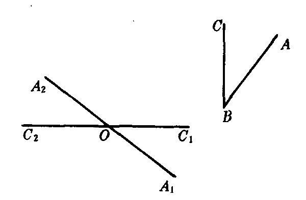 | 释义 | 两组边分别垂直的角的性质liangzu bian fenbie chuizhide jiao de xingzhi若一个角的两边分别垂直于另一个角的两边,则这两个角相等或互补.如图∠ABC=∠A1OC1,∠ABC=∠A2OC2.∠ABC与∠A1OC2互补,∠ABC与∠A2OC1互补.
