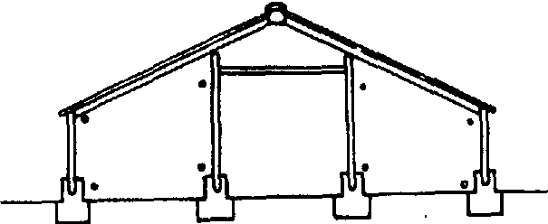 ❷屋面坡度。屋面与地面的倾角。单屋面温室受光屋面的倾角对透光率的影响最突出。生产实践上一般根据冬至前后当地正午时的太阳高度角和温室的功能,合理选择屋面坡度。日光温室后屋面的仰角,应不少于当地冬至日正午时的太阳高度角,这样阳光可以照满北侧墙。后屋面不宜过宽,否则春秋季节,室内遮荫面积过大。双屋面温室,东西向的,屋面坡度15~30度,依纬度而定;南北向的,透光率与屋面仰角关系不大。