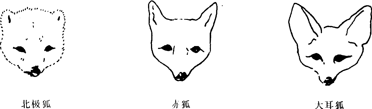 1.北极狐(Alopex lagopus) 2.赤狐(Vulpes vulpes) 3.大耳狐(Fennecus zerda)