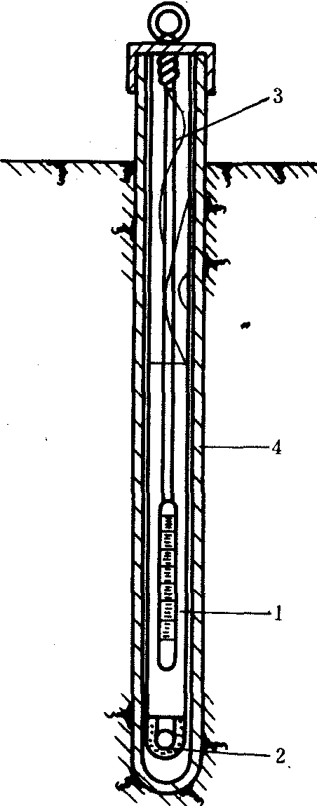 1.温度表;2. 套管底部;3. 三节棒;4. 套管