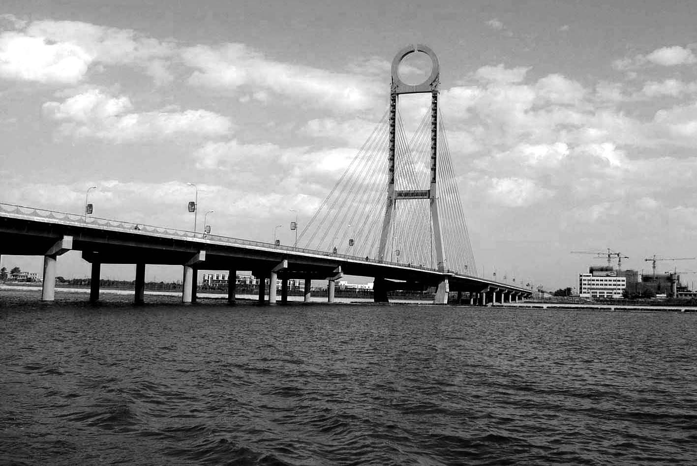 | 释义 | 渭城桥weichenɡqiɑo在咸阳城区东部,经东风路与人民路交叉处向南跨渭河、沣河,与世纪大道相接。全长2660米,其中渭河桥长800米,宽25米;沣河桥长255米,宽23米,正桥纵坡小于2.5%。桥上四车道,两侧各设3米宽慢车道和1.5米宽人行道。引道长1650米,纵坡小于3.5%。路面设三块板,断面为6+7+14+7+6米。渭河桥主跨为2100米,结构为预应力钢筋混凝土单塔双索斜拉桥,桥高88米,为目前西北地区最大的斜拉桥。设计车速每小时40公里,日通车能力可达14130辆。1993年2月17日正式建设,1995年11月18日竣工。2005年咸阳市人民政府正式命名为渭城桥。