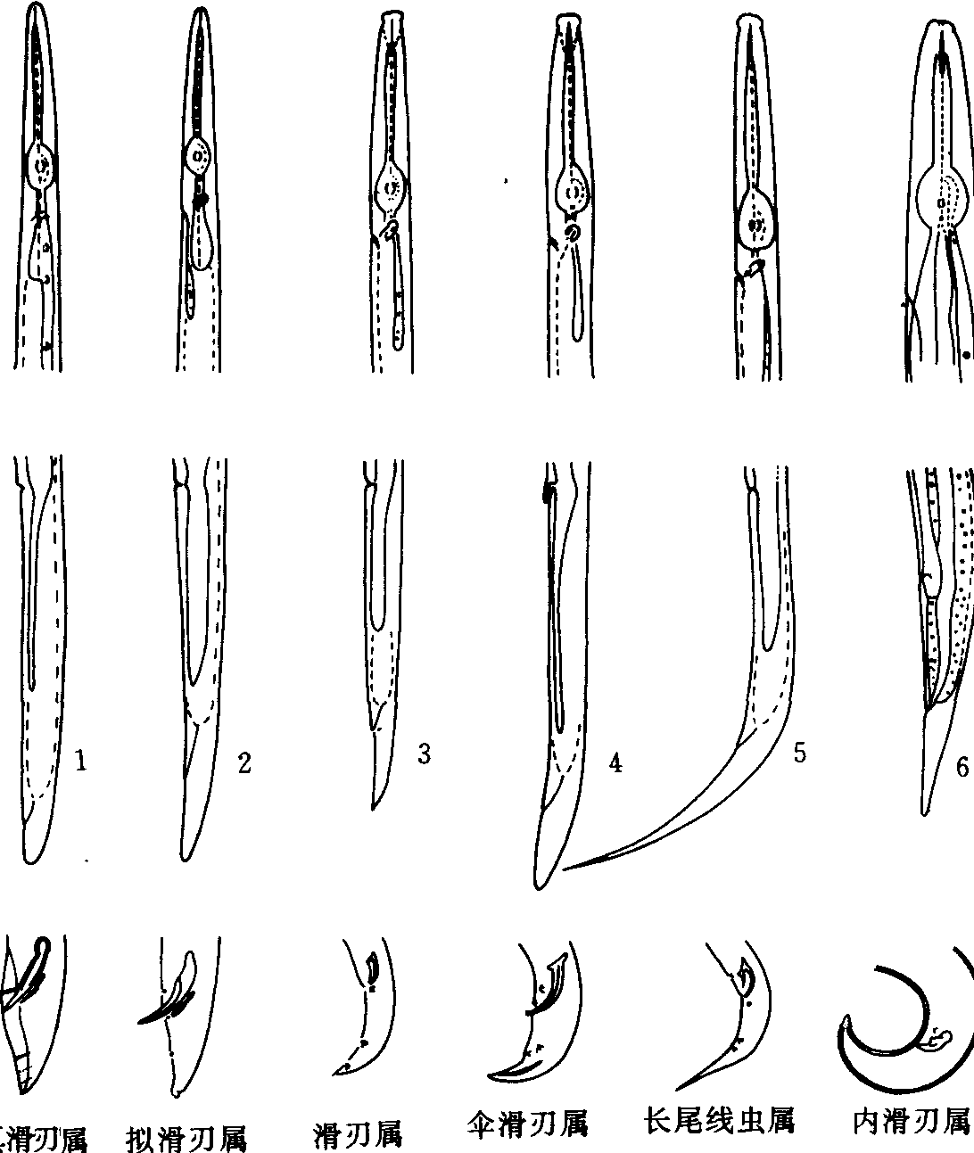 | 释义 | 滑刃线虫目Aphelenchida具有滑刃型食道即背食道腺在中食道球的食道腔内开口的食道和口针的一类线虫。通称滑刃线虫。属尾感器线虫纲,分2个线虫总科、6个线虫科和20多个线虫属,包括寄生高等植物、噬食真菌、捕食小动物和寄生昆虫等类群。