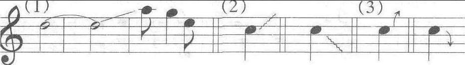 | 释义 | 滑音记号Portamento指用以表示从一音到另一音时声音连续滑行的符号。滑音记号多用于歌唱和弓弦乐器以及我国民族管乐器等。其标记(1)连接起音和滑向音之间的直线,滑向音通常用小音符;(2)一个音符后边的向上或向下的短曲线,向上表示上滑音,向下表示下滑音;(3)一个音符后边的向上或向下的箭头,向上表示上滑音,向下表示下滑音。