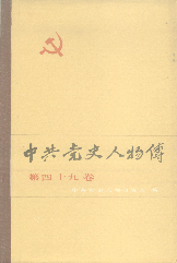 | 释义 | 中共党史人物传胡华主编,陕西人民出版社出版,大32开。由中共党史人物研究会组织全国党史工作者,在大量调查研究的基础上编写而成。全书计划出50卷。 中共党史人物传1~50卷胡华主编,陕西人民出版社1980年~1991年出版。大32开。本书共50卷,前30卷见“正编”。全书共编入著名烈士和杰出的党史人物传记628篇631人。所收人物包括:1.在党史上有较大影响的人物;2.在党的创建上有贡献的人物;3.著名的群众运动领导人;4.各革命根据地的创始人;5.著名的军事将领和党政领导人;6.领导白区斗争的重要人物;7.文化、经济界有影响的人物;8.在人民群众中有影响的英雄人物;9.其他在党的历史上有影响的人物;10.党外有影响的爱国、民主人士。 《中共党史人物传》中共党史上著名人物、著名烈士的传记丛书。以何长工为会长的中共党史人物研究会组织编写,主编胡华,副主编陈志凌、杨世兰。50卷精装本,陕西人民出版社于1991年全部出齐。本丛书的传主632位。包括:中国共产党的创建人,从中国共产党诞生到新中国成立前各个历史时期党、政、军主要领导人,各革命根据地创始人,工、农、青、妇组织杰出领导人,长期同中国共产党合作为革命事业做出重大贡献的民主人士和爱国华侨领袖等。先后有近千名党史、军史、现代史工作者参加本书编写工作。丛书字数达1270万字。陈云题写书名。杨尚昆、习仲勋、李维汉、陆定一、肖克等20多位老一辈无产阶级革命家担任本书编委会顾问。邓小平、胡耀邦、李鹏、李先念、聂荣臻、乔石等16位中央领导同志或题签、题词,或来函、批示,或参加指导会议,或审阅修改稿件。本书纠正了公开出版物记述中共党史人物的若干不准确论断和错讹。 ![]() 主要责任者: 中共党史人物研究会;胡华;陈志凌,杨世兰 责任方式: 编;主编;副主编 出版者: 陕西人民出版社 出版地: 西安 字数: 280 千字 页码: 1-407 开本: 32 装帧: 精 分辑名:第四十九卷 语种:中 定价:6.10 出版时间:1991-05 丛书多卷书否:是 书目简介:本册工具书共收录11条词条。 ![]() 主要责任者: 中共党史人物研究会;胡华;陈志凌,杨世兰 责任方式: 编;主编;副主编 出版者: 陕西人民出版社 出版地: 西安 字数: 240 千字 页码: 1-339 开本: 32 装帧: 精 分辑名:第十六卷 语种:中 定价:2.30 出版时间:1984-10 丛书多卷书否:是 书目简介:本册工具书共收录14条词条。 ![]() 主要责任者: 中共党史人物研究会;胡华;陈志凌,杨世兰 责任方式: 编;主编;副主编 出版者: 陕西人民出版社 出版地: 西安 字数: 255 千字 页码: 1-356 开本: 32 装帧: 精 分辑名:第八卷 语种:中 定价:2.45 出版时间:1983-02 丛书多卷书否:是 书目简介:本册工具书共收录10条词条。 ![]() 主要责任者: 中共党史人物研究会;胡华;陈志凌,杨世兰 责任方式: 编;主编;副主编 出版者: 陕西人民出版社 出版地: 西安 字数: 266 千字 页码: 1-380 开本: 32 装帧: 精 分辑名:第七卷 语种:中 定价:2.55 出版时间:1983-02 丛书多卷书否:是 书目简介:本册工具书共收录14条词条。 ![]() 主要责任者: 中共党史人物研究会;胡华;陈志凌,杨世兰 责任方式: 编;主编;副主编 出版者: 陕西人民出版社 出版地: 西安 字数: 260 千字 页码: 1-371 开本: 32 装帧: 精 分辑名:第四十二卷 语种:中 定价:5.30 出版时间:1989-12 丛书多卷书否:是 书目简介:本册工具书共收录14条词条。 ![]() 主要责任者: 中共党史人物研究会;胡华;陈志凌,杨世兰 责任方式: 编;主编;副主编 出版者: 陕西人民出版社 出版地: 西安 字数: 230 千字 页码: 1-332 开本: 32 装帧: 精 分辑名:第三卷 语种:中 定价:2.30 出版时间:1981-11 丛书多卷书否:是 书目简介:本册工具书共收录7条词条。 ![]() 主要责任者: 中共党史人物研究会;胡华;陈志凌,杨世兰 责任方式: 编;主编;副主编 出版者: 陕西人民出版社 出版地: 西安 字数: 250 千字 页码: 1-354 开本: 32 装帧: 精 分辑名:第三十六卷 语种:中 定价:4.25 出版时间:1988-04 丛书多卷书否:是 书目简介:本册工具书共收录14条词条。 ![]() 主要责任者: 中共党史人物研究会;胡华;陈志凌,杨世兰 责任方式: 编;主编;副主编 出版者: 陕西人民出版社 出版地: 西安 字数: 246 千字 页码: 1-350 开本: 32 装帧: 精 分辑名:第十二卷 语种:中 定价:2.65 出版时间:1983-11 丛书多卷书否:是 书目简介:本册工具书共收录14条词条。 ![]() 主要责任者: 中共党史人物研究会;胡华;陈志凌,杨世兰 责任方式: 编;主编;副主编 出版者: 陕西人民出版社 出版地: 西安 字数: 263 千字 页码: 1-375 开本: 32 装帧: 精 分辑名:第四十五卷 语种:中 定价:5.70 出版时间:1990-10 丛书多卷书否:是 书目简介:本册工具书共收录13条词条。 被引频次:5 ![]() 主要责任者: 中共党史人物研究会;胡华;陈志凌,杨世兰 责任方式: 编;主编;副主编 出版者: 陕西人民出版社 出版地: 西安 字数: 234.5 千字 页码: 1-334 开本: 32 装帧: 精 分辑名:第十八卷 语种:中 定价:2.50 出版时间:1984-11 丛书多卷书否:是 书目简介:本册工具书共收录13条词条。 ![]() 主要责任者: 中共党史人物研究会;胡华;陈志凌,杨世兰 责任方式: 编;主编;副主编 出版者: 陕西人民出版社 出版地: 西安 字数: 251 千字 页码: 1-358 开本: 32 装帧: 精 分辑名:第二十三卷 语种:中 定价:5.20 出版时间:1985-09 丛书多卷书否:是 书目简介:本册工具书共收录16条词条。 ![]() 主要责任者: 中共党史人物研究