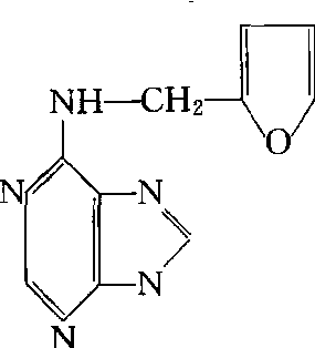 | 释义 | 激动素kinetin,KT一种具细胞分裂素活性的DNA降解产物。为非天然的细胞分裂素。1955年米勒(C. D. Miller)等从高压灭菌后的DNA中分离、结晶出一种能促进细胞分裂的物质,并定名为激动素。迄今未发现植物体内有激动素的存在。化学名称:6-糠氨基嘌呤或6-糠基腺嘌呤。结构式如右。分子量215.2。易溶于稀盐酸、稀氢氧化钠,微溶于冷水、乙醇、甲醇。主要作用是促进细胞分裂,并有延缓衰老及保绿作用。常用于植物组织培养。