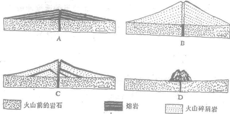火山结构形态 火山地貌Huoshan dimao火山喷发物形成的各种堆积体。火山喷发时,有大量的气体、液体、和固体物质,通过火山通道(火山喉管)从地球深部喷发出来。大量的固体物质随气体喷到空中,再落到地面堆成锥形火山体,称为火山。火山的规模大小不一,大的火山相对高度可达4 000—5 000米,火山口的直径为数百米。例如苏联勘察加半岛克留契夫火山相对高度4 572米,火山口直径675米。一些规模较小的火山,相对高度不及百米。火山有时成群分布,称为火山群,如大同的火山群。火山一般由火山锥、火山口和火山喉管三部分组成。❶火山锥:由火山碎屑物和火山熔岩堆积而成。火山碎屑物包括火山灰、火山渣和火山弹。完全由火山碎屑堆积的称为火山碎屑锥(图1.B);由火山熔岩形成的火山锥叫熔岩锥(图1.A),其锥体坡度缓,又称盾形火山;由火山碎屑和熔岩交互成层组成的火山锥,称为混合锥(图1,C);如果一个火山锥一坡主要是熔岩流出形成的平缓锥坡,而另一坡无熔岩,主要由火山碎屑物组成的较陡坡,就形成了一坡缓一坡陡的不对称火山锥。如山西大同的许堡火山(图2);如果火山锥是由粘性很高的熔岩喷发后急剧冷却形成的,坡度很陡、体积不大的锥体称为熔岩滴丘(图1,D)。