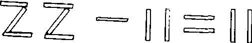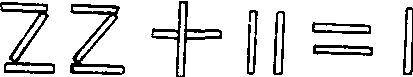 例3: 下图表示一个算式22+11=1,试移动其中一根火柴,使之变为等式。