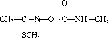 性能 纯品为白色结晶,稍带硫磺气味,熔点78~79℃,25℃时蒸气压为6.67×10-3帕,溶解度:水58克/升,甲苯30克/千克,丙酮730克/千克,乙醇420克/千克,异丙醇220克/千克,甲醇1000克/千克。其水溶液无腐蚀性,通常条件下稳定,碱性条件或在潮湿土壤中易分解。对高等动物经口急性毒性高,大白鼠急性口服LD50为17~24毫克/千克,兔经皮急性LD50>5000毫克/千克;对鱼类毒性较高,96小时LC50,虹鳟鱼3.4毫克/升,蓝鳃鱼0.87毫克/升,金鱼0.1毫克 /升;对蜜蜂无害。杀虫广谱,已在81个国家注册,杀虫谱超过120种。具有内吸、触杀和胃毒作用;对粘虫、大豆夜蛾、棉铃虫、红铃虫、烟芽夜蛾、粉纹夜蛾、欧洲玉米螟等害虫的卵、幼虫及成虫均有毒杀作用。植物通过根吸收传至地上部分。作用机制为抑制胆碱酯酶。 应用 尽管急性经口毒性高,但经皮毒性低,仍可作叶面喷洒使用。可用于果树、棉花、蔬菜、苜蓿、烟草、观赏植物等防治蚜虫、蓟马、粘虫、甘蓝银纹夜蛾、烟草卷叶虫、苜蓿叶象甲、烟草天蛾、棉叶潜蛾、苹果蠹蛾、棉铃虫等。土壤处理,通过植物内吸可防治叶部刺吸式口器害虫。对拟除虫菊酯或有机磷已产生抗药性的害虫亦有良好防治效果。 灭多威methomyl又称灭多虫、乙肟威、Lannate。广谱高毒杀虫剂。化学名称:1-(甲硫基)亚乙基氨-N-甲基氨基甲酸酯。化学结构式如下。纯品为白色结晶,熔点78~79℃,25℃时蒸气压666.6×10-5Pa,密度1.295 g/ml。水中溶解度(25℃)58 g/L。易溶于极性有机溶剂,100g溶剂可以溶解73 g/丙酮、42 g/乙醇、22 g/异丙醇、100 g/甲醇、3 g/甲苯。口服LD50大鼠(♂)为17 mg/kg、大鼠(♀)24 mg/kg、小鼠10 mg/kg。经皮LD50兔75 000 mg/kg。吸入LC50大鼠0.3 mg/L(4 h)。对鱼及蜜蜂高毒。有胃毒和触杀作用,可以防治棉花、水稻、果树、蔬菜及经济作物的各种害虫。有内吸作用可以利用防治蚜虫及其它刺吸口器害虫。