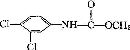| 释义 | 灭草灵swep氨基甲酸酯类内吸、选择性除草剂。化学名称:甲基-N-(3,4-二氯苯基)氨基甲酸甲酯。化学结构式如下。纯品为白色结晶,熔点112~114℃,不溶于水、煤油和氯仿,易溶于二甲基甲酰胺、丙酮、二-异丁酮等有机溶剂。性质较稳定,在碱性介质中易分解。可被幼芽吸收,抑制细胞的有丝分裂,干扰植物体内的代谢过程。药效较慢,水稻、马铃薯等有较强耐药力。主要用于水稻田防除稗草、牛毛草、三棱草等。对大鼠急性口服LD50为552 mg/kg,兔急性经皮LD50>2 480 mg/kg。