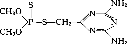 性能 纯品为无色结晶,熔点160℃~ 162℃(分解),在中性及弱酸性条件下稳定,在碱性及强无机酸条件下不稳定。灭蚜松为弱碱性化合物,可以与苦味酸、盐酸等成盐。微溶于水,20℃时溶解度为240毫克/升,难溶于一般有机溶剂,可溶于乙二醇、四氢呋喃等有机溶剂。对高等动物低毒,大白鼠急性口服LD50 1950毫克/千克(雄); 大白鼠急性经皮LD50 4500毫克/千克。对鱼类低毒,对蜜蜂有毒。对害虫具有内吸和触杀作用。 应用 灭蚜松对防治各类蚜虫有特效,除对叶螨、蓟马等有一定兼治效果外,对其他害虫无效,对蚜虫的捕食性或寄生性天敌安全。主要用于防治蔬菜、烟草、果树、棉花、马铃薯、甜菜等作物上的蚜虫,同时对一些蚜传植物病毒病有减轻为害的作用。灭蚜松有可湿性粉剂、悬浮剂、种衣剂、颗粒剂等剂型,喷雾施用药效发挥较为缓慢,多用作土壤处理、种子或种薯处理、浸根处理。灭蚜松施用后具有持效期长的突出特点。除用于花椰菜浸根会发生药害外,一般使用下对作物安全。 灭蚜松menazon选择性内吸有机磷杀虫剂。化学名称,S-〔(4,6-二氨基)-1,3,5-三嗪-2-基〕甲基〕O’O-二甲基二硫代磷酸酯。化学结构式如下。纯品为无色结晶,熔点160~162℃(分解),25℃时蒸气压133.322 Pa。20℃时水中溶解度为240mg/kg,能溶于2-乙氧基乙醇、2-甲氧基乙醇、乙二醇等。在50℃以内稳定,pH<4或>8时分解。对各种蚜虫有强的触杀和内吸胃毒活性,能从根及叶面吸收并传导,药效期长在30天以上,对其他害虫或螨类活性很低。用于防治各种作物上的蚜虫。对雄大鼠的急性口服LD50为1 950mg/kg,急性经皮LD50>4 500 mg/kg,对鱼及天敌低毒。