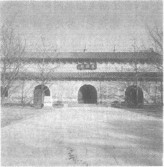灵谷寺无量殿中国古庙。位于江苏省南京市东北郊钟山左独龙岗。建于明洪武十四年(1381)。为灵谷寺仅存的一座古建筑,为重檐歇山顶,高22 m,东西53.8 m,南北37.8 m,正面5间,进深3间。墙体与拱券全部用砖砌筑,上部拱券成半圆形,组成屋顶结构的主体,用砖券代替木梁,故又称无梁殿。清咸丰年间灵谷寺遭严重破坏,无量殿因砖砌而未毁。 |