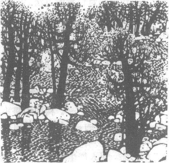 春水 张日波点的表现力实例 点山水画中点苔、点叶的一种技法。中国画中常用“墨点”来加强物体的体面关系和立体感。用点来表达树木枝叶,山石或整座山脉的远近虚实的气势。点墨点时,尤如从空而坠,绝去笔迹,多以尖笔侧下,使作点,沉着而有份量,灵活而不呆滞。点下笔时要求实而有力,落纸要轻,纷乱点而无错,点点醒目。画点时,或浓或淡,有散有聚,大小相间,为画而增添一番精神。有时在画面上运用大小不同方向、浓淡、虚实的点的笔触,积成大点染面,用以加强所画对象体面上的凹凸、起伏变化,称为“点染”。点染法的特点为:用较碎的笔染,每笔之间有连、有断;点间空隙之间,有的是飞白(常见飞白),有的渗化,有的是空白,使之笔意多变,用以加强质面的粗糙起伏的立体感觉。 |
