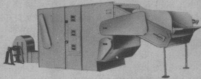 图3 高频烘干机 高频加热, 对形状、含水量不同的茶叶有一定选择性。对细茶、紧茶及含水量10%以上的茶叶, 能较快吸收能量; 而对茶朴、粗老茶和含水量5%以下的茶叶吸收高频能量差。所以该机宜用于细、紧的茶叶和含水量多的茶叶。它的特点是: 升温快且易控制,烘干质量好, 但耗电偏大。 高频烘干是近代发展起来的一种新加热技术, 很多国家普遍应用在农作物和谷物加热烘干上。中国在70年代开始应用。1978年江苏省苏州市茶厂试用高频烘干茶叶, 初步获得成功。 微波烘干机 是一种介质加热烘干设备。含水物质都是吸收性物质, 能强烈吸收微波, 微波与物质分子相互作用而产生热效应。利用微波原理制成的烘干机, 应用在制茶干燥工序中。在微波场作用下, 中性水分子可以被激励成极性分子,并按微波场方向排列。微波电场每秒几亿次周期性的改变方向, 这种振荡和转向, 使极化水分子产生激烈的摩擦, 使微波能变为热能, 取得快速加热茶叶的效果。它的特点是, 热源分布在茶叶内部, 加热均匀, 茶叶干燥迅速。 该机由隧道或微波炉干燥器、波导传输器、排风装置、能量抑制器、传输机构、微波管和电源等组成(图4)。微波炉干燥器是主机。工作时, 微波电源产生的微波能量经波导传输器馈入干燥炉。茶叶由传输带送入干燥器, 受到微波电磁场的强烈作用, 内部水分被蒸发, 由吸风排湿装置排出。