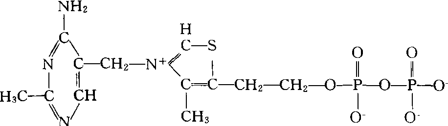 | 释义 | 焦磷酸硫胺素thiamine pyrophosphate,TPP硫胺素焦磷酸酯。含有维生素B1。在催化反应中,分子内噻唑环2位碳上的氢解离形成负碳离子,与α-酮酸的羧基碳结合形成加成物,进而脱去二氧化碳生成相应的醛。为α-酮酸氧化脱羧酶和转羟乙醛基酶的辅酶,在糖的分解代谢和光合三碳循环中极其重要。