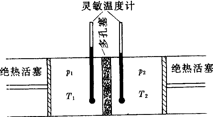 | 释义 | 焦耳-汤姆孙实验jiaoer-tangmusun shiyan通过观察气体经过多孔塞膨胀后温度的变化来研究气体内能的一个著名实验。又称“多孔塞实验”,“节流实验”。焦耳和汤姆孙于1852年为了进一步研究气体的内能,对焦耳气体自由膨胀实验进行改进,实验装置如图所示:在良好的绝热管子中,装置一个由多孔物质(如棉絮、石棉等物质)做成的多孔塞,多孔塞对气流有较大的阻滞作用,从而在两边能够维持一定的压力差。实验中气体持续不断地从多孔塞一边流到另一边去达到稳定流动状态,即气体在流动中,空间任何地点的情况都不随时间变化。多孔塞左边压强维持在较高的数值p1,气体经多孔塞后压强降为p2,用温度计分别测出两边的温度。实验结果,多孔塞两边气体的温度一般不相等。表明气体的内能不仅是温度的函数,也是体积(或压强)的函数。焦耳-汤姆孙实验不仅对研究气体内能有重要意义,而且利用气体节流膨胀后温度变化的效应,可以获得低温(见焦耳-汤姆孙效应)。