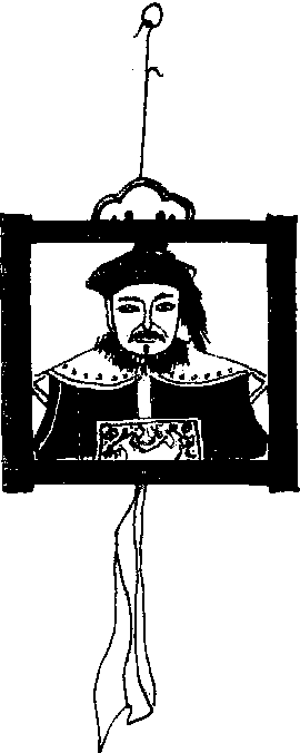 在木牌上,画一彩色清朝官吏的像,下系一块红布,四边为黑色。作为影像铺子的标记。