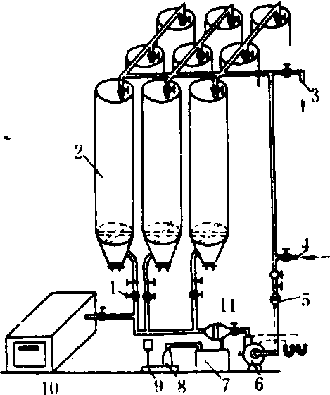 筒仓环流熏蒸示意图 1.隔膜(流量)阀; 2.筒仓;3.排气口;4.进气口;5.空气过滤;6.风机;7.加温器及气化室;8.溴甲烷; 9.磅秤;10.粉尘熏蒸室;11.膨胀罐 环流熏蒸设备 常用于大型粮食筒仓的整批熏蒸。在筒仓及建筑物设计时就考虑到密闭性能和所应配备的专用环流熏蒸设备,其工艺流程如图所示。 当用溴甲烷(CH2Br)或环溴混合剂[溴甲烷85%+环氧乙烷(C2H4O)13%]熏蒸时,先将管道阀门打开,再把加温器中的水用电热丝加热至40~60℃,开动风机和打开进气阀门,然后投药,药剂进入加温器到气化室,由风机送入膨胀罐,再入筒仓底部环形进气管而入粮层,使毒气自下而上进行循环。筒仓底部及顶部均设有测气孔,随时检测毒气浓度。当扩散均匀并达到所需浓度后,即可停止循环。密闭到规定时间,打开进气和排气阀门,开动风机,由仓顶排除废气,当毒气残留浓度下降到允许值以下时,停止鼓风。 真空熏蒸设备 真空熏蒸是一种安全、快速、有效的杀虫灭菌技术,它是将物品放置在密闭的真空熏蒸容器中,并将容器中空气抽到所需真空度,使液态和气态的熏蒸剂气化后施入容器中进行熏蒸以达到杀虫、灭菌目的。由于是在真空状态,药物易于扩散渗透,效率高,熏蒸时间可大大缩短。 |