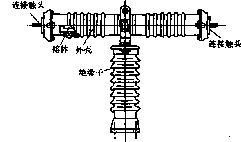 | 释义 | 熔断器fuse cutout串联在电路中的熔体受热熔断自动断开过负荷或短路回路的一种保护电器。熔断器是最早使用的保护电器之一,由于它具有体积小、安装维护方便、价格低廉、断流容量大等优点,至今仍被广泛地应用。近代采用新熔体材料、新结构,不断出现额定电流大、开断能力高、熔断速度快、保护特性好的新型熔断器。熔断器由低熔点的金属熔体、连接触头及支撑在绝缘底座上的外壳三部分组成(图1、图2)。分为低压和高压熔断器,户内式和户外式熔断器,有限流效应和无限流效应熔断器等几类;从结构上可分为开启式、半开启式和封闭式三类;封闭式又分为有填充材料和无填充材料两类。