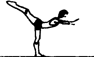 保护与帮助 保护者站在练习者侧方位置, 一手托胸,一手托大腿,帮助控制平衡。 教学重点 抬头、挺胸,充分展髋,背部紧张,后举腿至极限,支撑腿切勿弯屈。 |