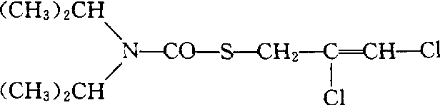 | 释义 | 燕麦敌diallate氨基甲酸酯类内吸、选择性除草剂。化学名称:S-(2,3-)二氯烯丙基-N,N-二异丙基硫代氨基甲酸酯。化学结构式如下。原药为琥珀色油状液体,1200 Pa压力下沸点159℃,凝固点-8~-15℃,几乎不溶于水,可与乙醇等有机溶剂混溶,易挥发。土壤处理剂,杂草在出芽过程中,由芽鞘或第一片叶吸收药剂,使芽鞘中可溶性核糖核酸大量减少,影响细胞有丝分裂,阻碍细胞生长。燕麦敌可用于小麦、大麦、青稞、甜菜、油菜等作物田,防除野燕麦、毒麦和看麦娘等禾本科杂草。播前或播后芽前土壤处理,施药后应混土或覆土以防止药剂挥发。燕麦敌对大鼠急性口服LD50为395 mg/kg,兔急性经皮LD50为2 000~2 500 mg/kg。对皮肤、眼和黏膜有刺激作用。