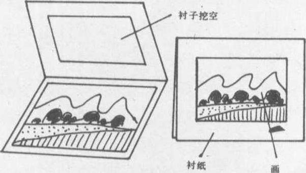 版画的装裱Banhua de zhuangbiao为了便于欣赏和保存版画,一般采用双衬挖孔装裱法。底衬贴放版画,环衬是根据画面的大小挖空心制成。衬纸的颜色可选择白色、黑色或不同的灰色调,达到对版画的衬托与谐调的装潢效果。这如同中国画的装轴裱绫和油画的画框一样,具有着装打扮、增色生辉的美化作用。版画展览陈列还要装入镜框,以便于悬挂。尤其现代版画对衬纸和镜框的装裱,更讲究美观漂亮。