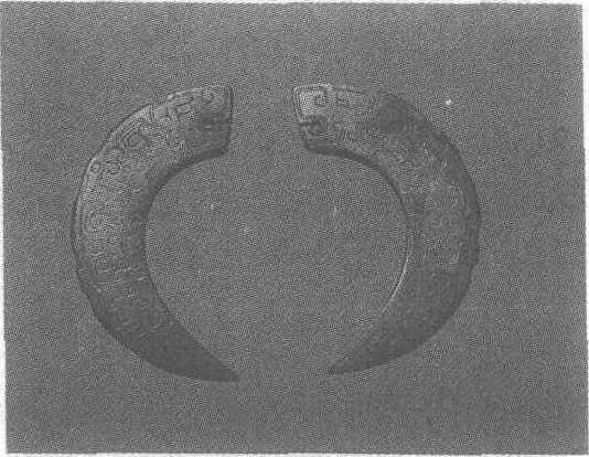 | 释义 | 牙形玉饰春秋早期。长6.5厘米,宽1.6厘米,厚0.12厘米。1983年河南省光山县宝相寺黄君孟墓出土。河南省信阳地区文物管理委员会藏。由青玉制成。器形为圆弧状,扁平体,形似牙。两件纹饰相同,两面均饰双钩刻臣字形目的侧身夔龙纹,龙体的一侧有凸脊。龙口有小孔,可穿系。同时出土的玉牙形饰共6件,两两成对,有一对单面刻蚕纹,另一对素面无纹饰。