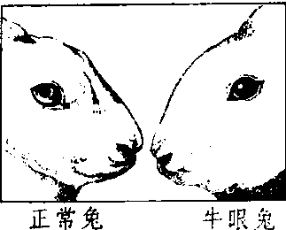 | 释义 | 牛眼症buphthalmia又称水肿眼、先天性青光眼。家兔常见的遗传性疾病之一。病兔的眼睛像牛的眼睛那样圆睁而突出,常称为“牛眼”。约在2~3周龄后开始发生。起初,眼前房变大而有清楚的角膜,或出现青色的云雾状;继之,角膜变得扁平且溷浊,眼球凸出,并发生结膜炎,引起视力衰退。“牛眼”可在一侧或两侧眼球发生,公兔患牛眼症时,还表现为生殖性能降低。牛眼症,由常染色体上的隐性基因bu所致,因为bu基因与白化基因(c)呈不完全连锁,所以牛眼症经常在白化兔中发现。有人对牛眼症进行遗传研究后发现,当饲料中提高维生素A的水平时,bu基因的外显率降低,由此可认为牛眼症是因bu基因阻碍了β-胡萝卜素转化为维生素A的过程而发生。