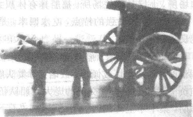 栈车陶塑模型 牛车亦称大车、方箱车。秦汉时期陆地上的主要交通工具。其车驾牛、故名。牛车双辕,均为直形,与今大车略同。车箱为方形。先秦时多为庶民乘用,此风秦汉犹存。因此汉初“将相或乘牛车”,被看成是反常现象而载入史册。 |