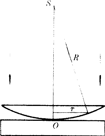 测出某一亮(暗)环的半径γm和从它向外数第k个亮(暗)环的半径γm+k,可算出光的波长λ=(γ2m+k-r2m)/kR。在磨制光学元件表面时,可将凹凸与标准面相反的透明模具放在被加工面之上。若加工符合要求,两者严丝合缝,用单色光垂直照射时,将看不到干涉条纹;否则两者之间形成空气薄膜,用单色光垂直照射时,便可看到类似于牛顿环的干涉条纹,从这些干涉条纹的状况可判断如何继续加工。 |
