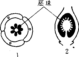 1. 子房横切面 2.子房纵切面
