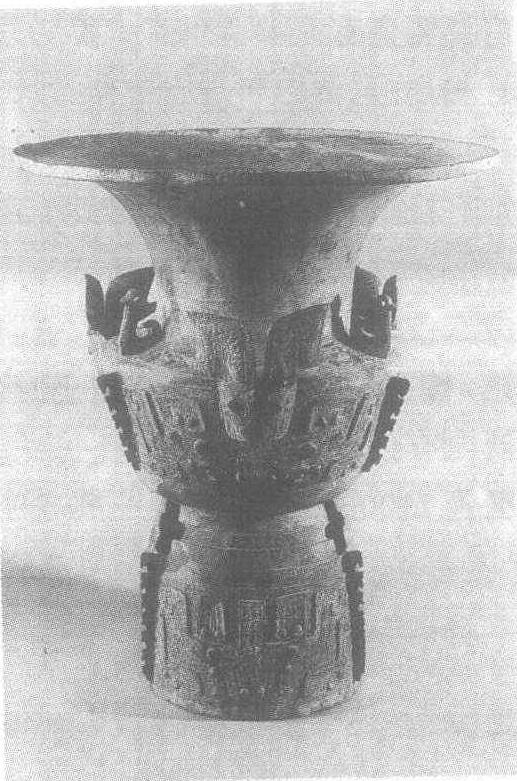 | 释义 | 牺首饕餮纹铜尊商。盛酒器。通高73.2厘米,口径61厘米。1966年湖南省华容县出土。上海博物馆藏。此尊大口呈喇叭形,内沿较平,高颈,折肩,折腹,高圈足。肩部立有三鸟。肩与腹间置三个立体的兽首。腹部和圈足上均有三条扉棱,它们之间尚有三个“十”字形镂孔。此器通体以云雷纹为地,饰有三个饕餮纹。这样大型的尊,在我国古代青铜器中实属少见。 牺首饕餮纹铜尊商。盛酒器。通高56.2厘米,口径52.5厘米。1971年湖南省岳南县费家河出土。湖南省博物馆藏。此尊大口,折肩,折腹,高圈足。圈足下置三矮平足。腹部和圈足上均有扉棱三道,并在相接处尚有三个方形镂孔。此器除颈部有三周弦纹外,通体均以云雷纹为地饰饕餮纹。