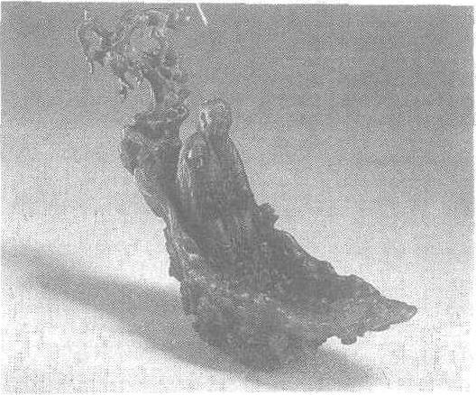| 释义 | 犀角雕仙人乘槎清。约为清初至雍正(公元1644—1735年)。长21.1厘米,宽6.6厘米,高11.1厘米。北京故宫博物院藏。槎形如虬龙,呈倾立状,似被其下的波浪涌起的一般;槎尾一仙人,须髯拂胸,衣宽袖大袍屈膝坐于槎中,其左手抚膝,右手握卷,向上举到肩部,直望着正前方,似被何人召唤着,正欲起身上前回答。创作者将仙人欲起未起的瞬间动态恰到好处地表现出来,静中有动,景外有情,状极生动。