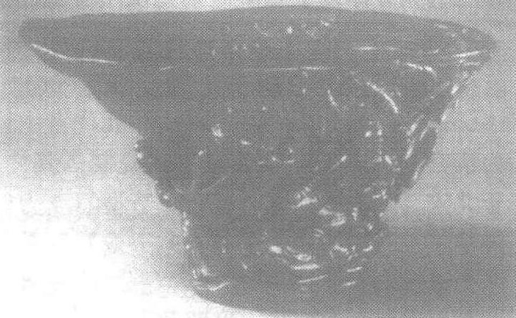 | 释义 | 犀角雕松荫高士杯清代宫中饮酒器,又为多宝格上之陈列品。杯高7.4厘米,口径13.4×8.8厘米,足径4.7×3.8厘米。此杯杯口外撇,杯壁浮雕苍松、芭蕉、人物图景,构成松荫高士的恬适意趣。虬松蟠结掩映,枝叶蜿蜒直入杯口。松下一老翁倚坐椅上,神态悠闲自在。老翁前面有二人展卷,其中一人提笔挥写数字: “天以清,地以宁,诞生伊传秉钧衡,万类贺升平。”一童持帽立于松下。杯底阴刻楷书诗句: “脱帽露顶王公前,挥毫落纸如云烟。” 点明构图之题旨。下刻篆文“尤侃” 方印。此杯质地光洁莹润,刻工简朴浑厚,人物神态生动逼真,表情细腻传神,是尤侃的角雕名作。尤侃又名尤通,江苏无锡雕刻名家,善刻犀象玉石玩器。尤以雕刻犀角著名,人称“尤犀杯”,康熙年间曾被征入内苑,专为皇室制作工艺绝品,后以年老辞归,退居故里。