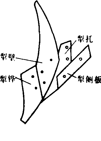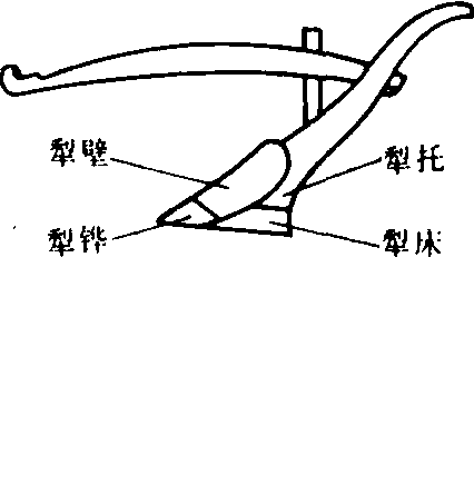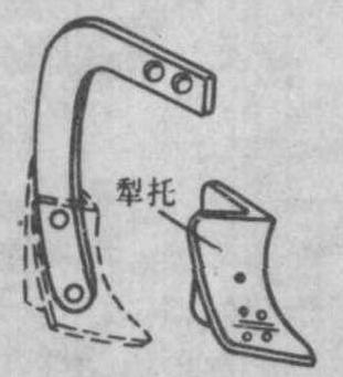 图3 犁壁 犁托 固定犁铧、犁壁及犁侧板的连接件。多为钢板冲压或焊接而成,也有铸钢或铸铁犁托。犁托上部通过犁柱与犁架连接。也有将犁托和犁柱制成一体的(图4)。